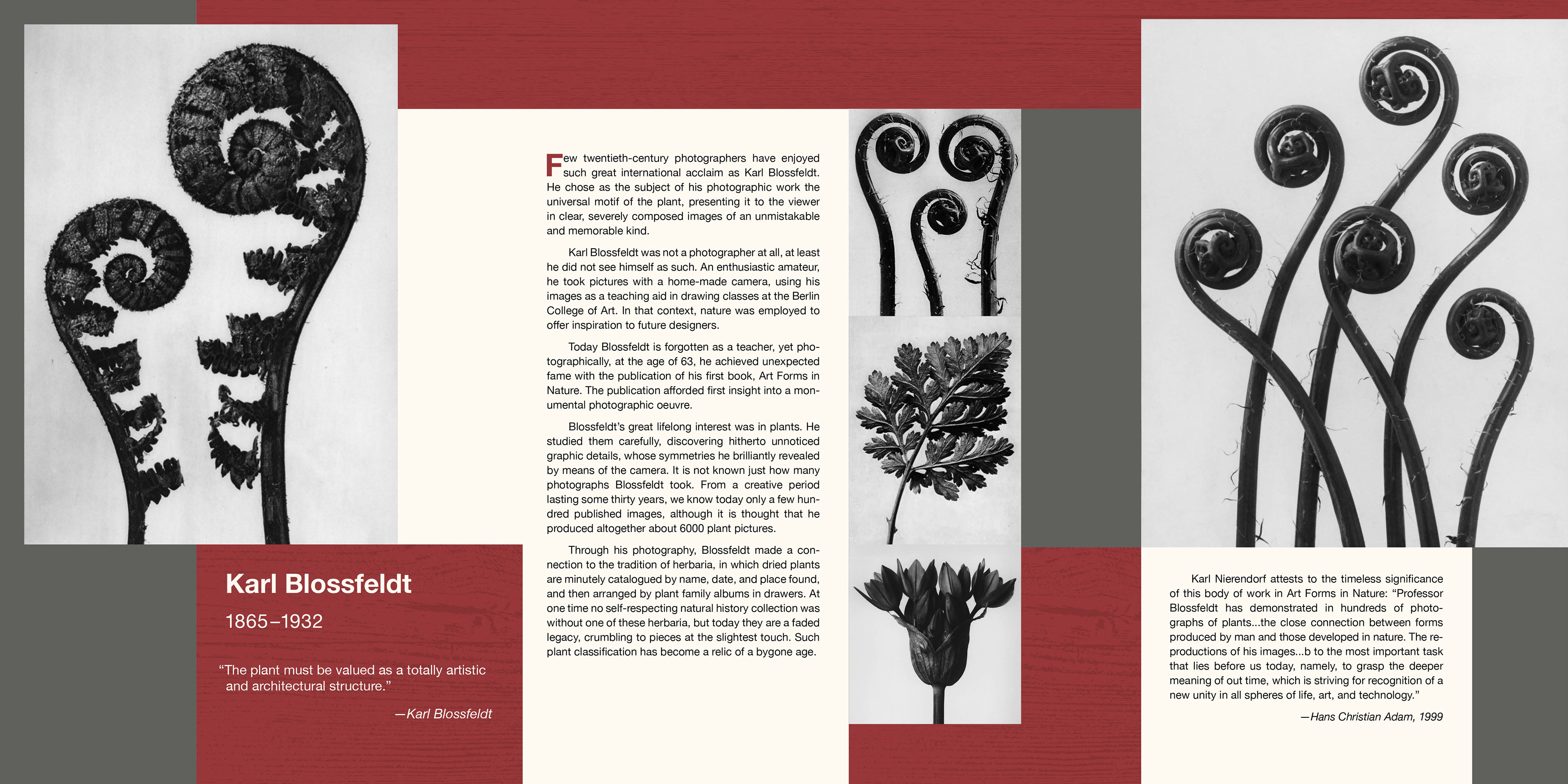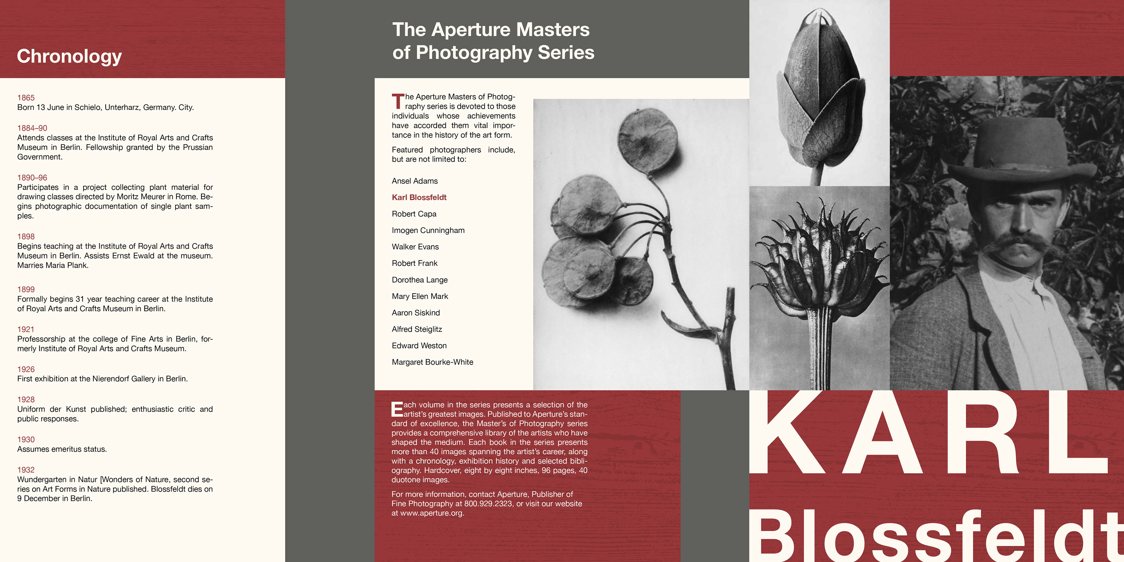 The objective of this project was to design a brochure for "The Aperture Masters of Photography Series" that highlights the photographer Karl Blossfeldt and his work.
